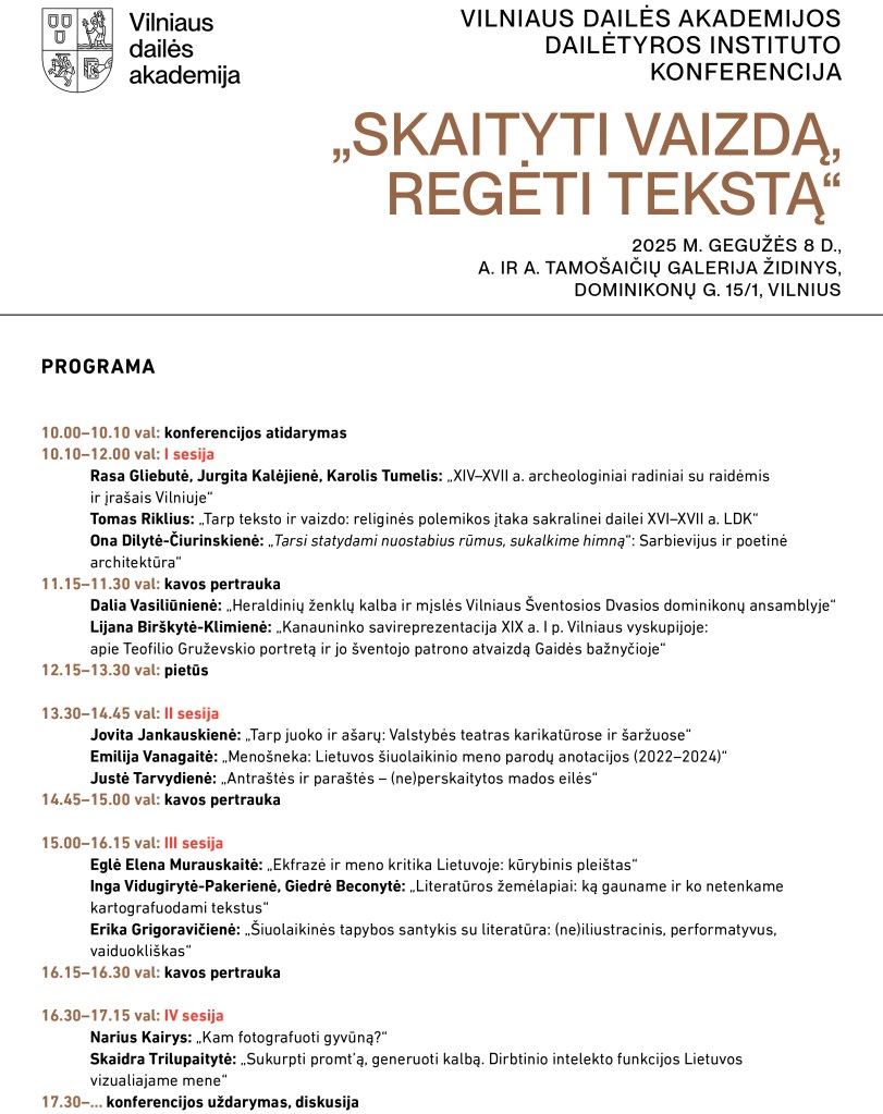 Skaityti vaizdą, regėti tekstą | read image, see text – Conference of the Institute of Art Studies of the Vilnius Academy of Arts