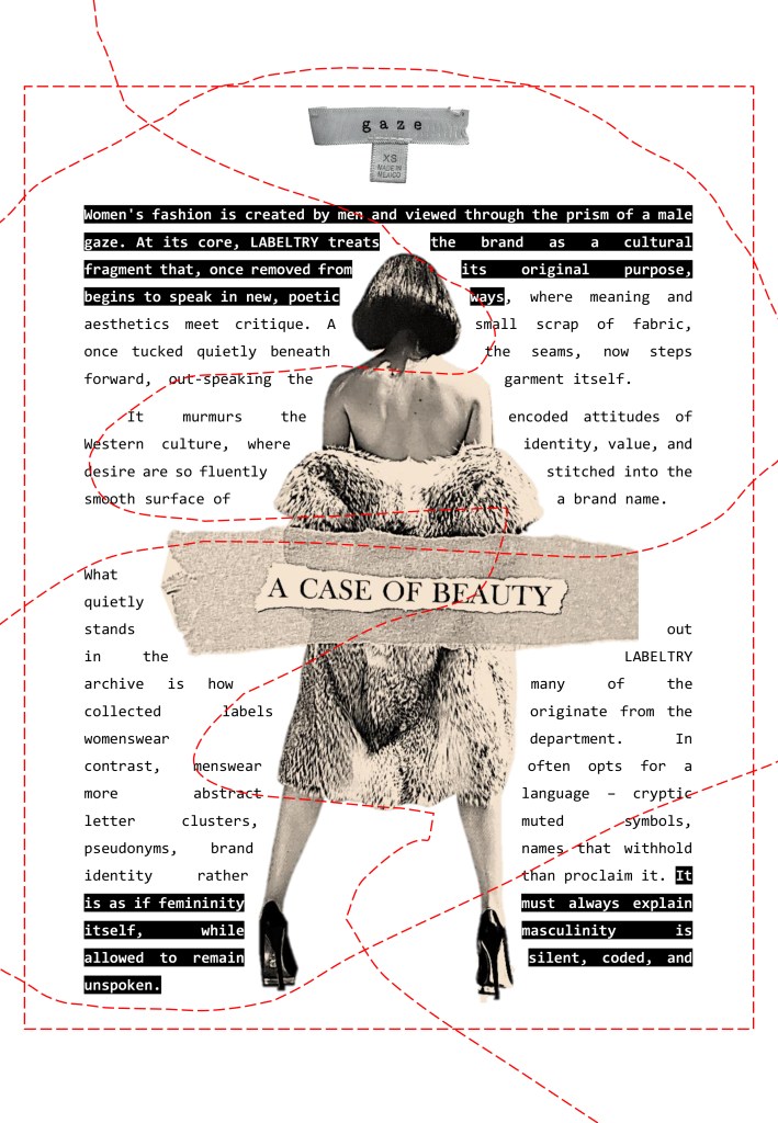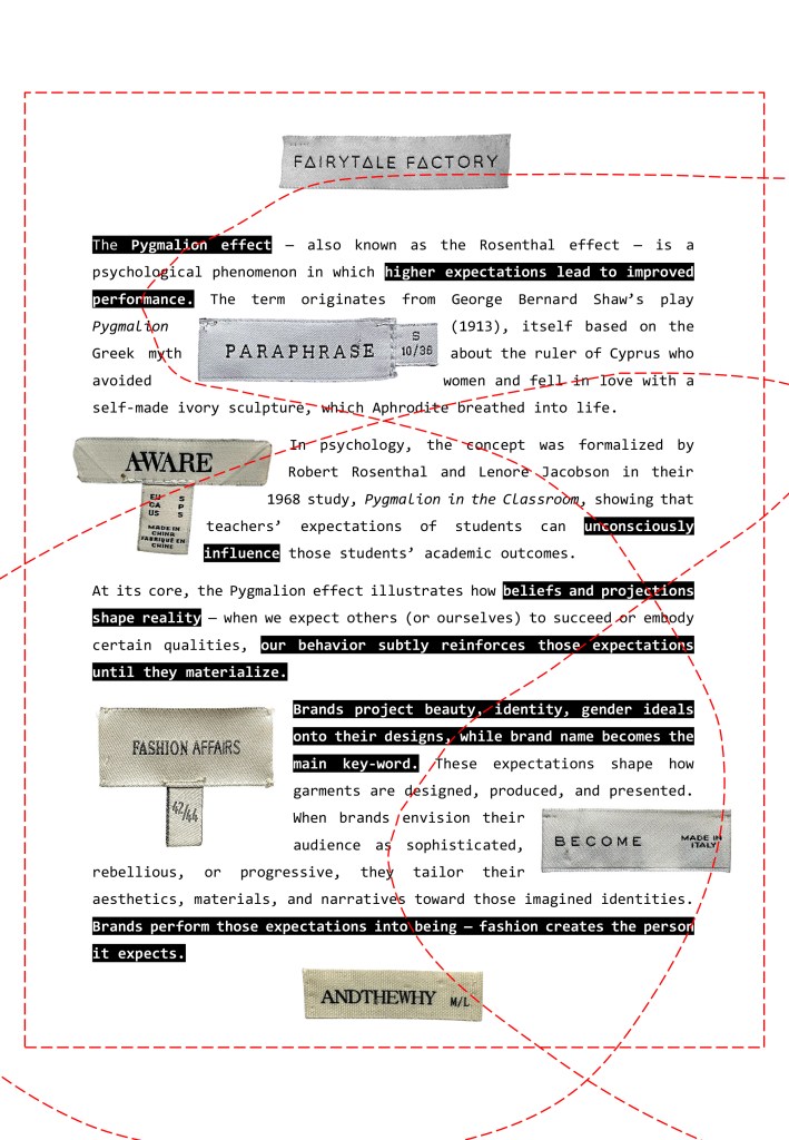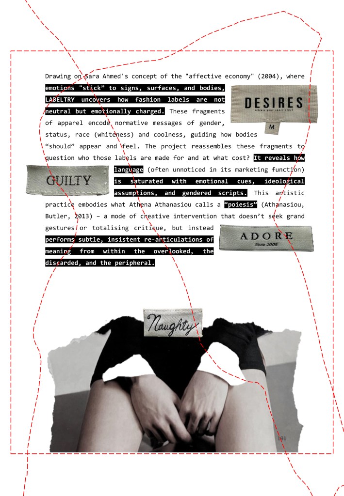 doctoral artistic research exploring fashion as an artistic media. I examine fashion artifacts (ready-made) as relics of a consumer society that critically reveal its contradictory nature.